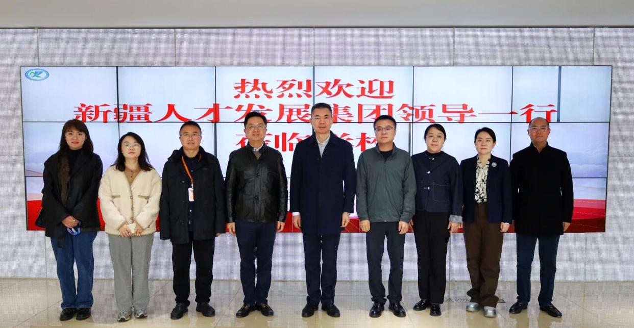 12 月 1 日,新疆人才发展集团有限责任公司党委副书记、董事、总经理张硕,新疆人才智慧教育科技有限公司总经理何聆溪, 新疆人才集团战略投资部(董事会办公室)部长、新疆博达人才开发有限公司党支部书记、董事、总经理杨立峰,新疆人才创新科技有限公司党委书记、董事长邱素君一行莅临四川兴科城市交通高级技工学校开展调研交流。