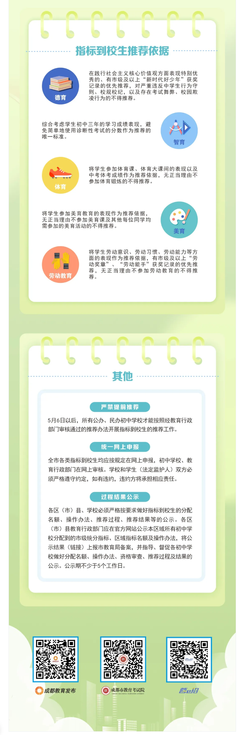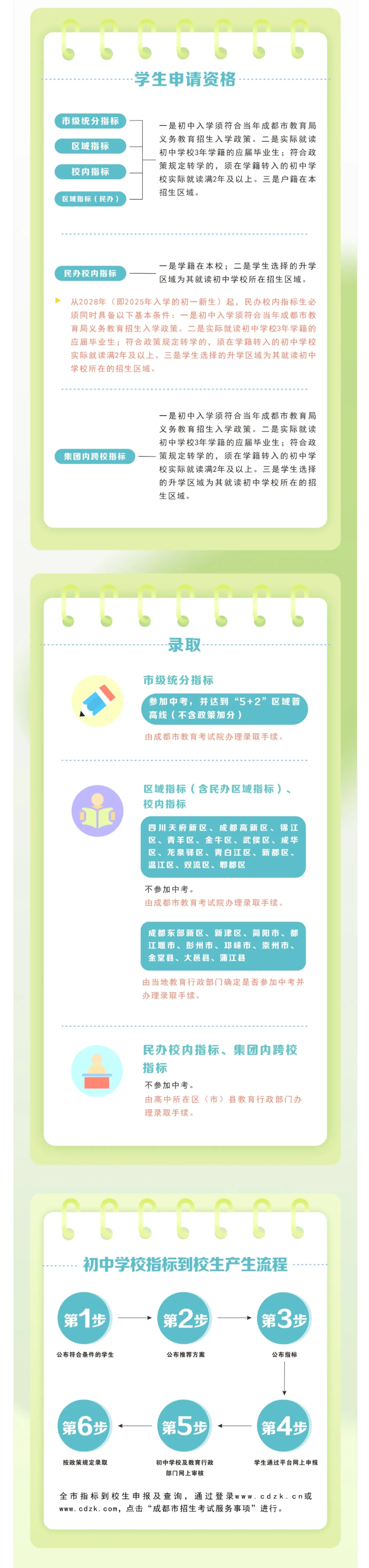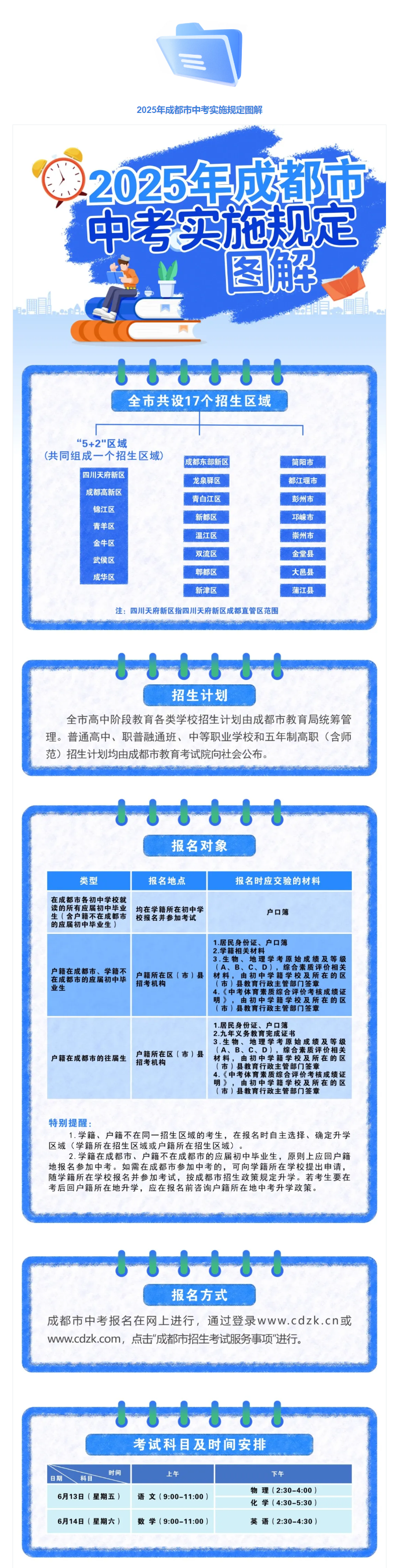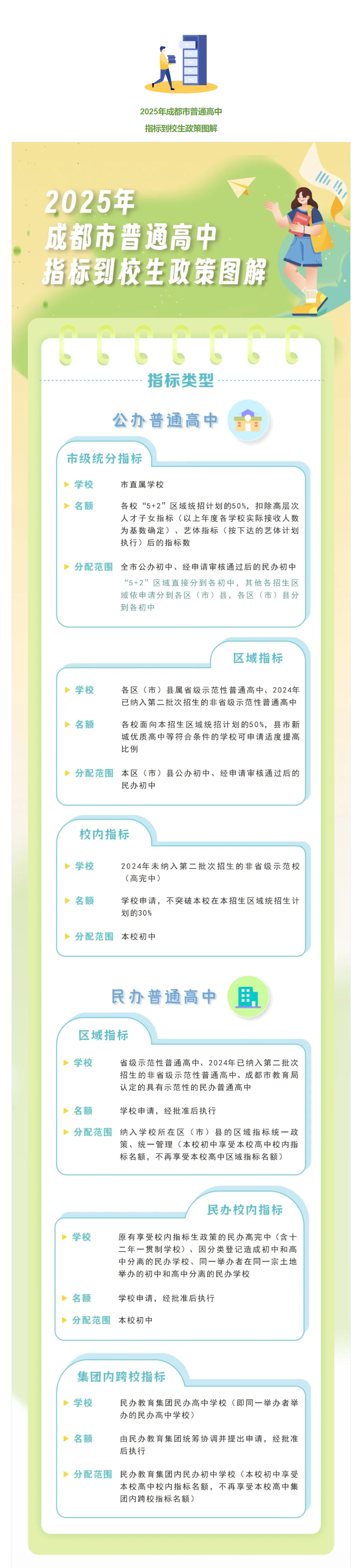 近日,成都市招考委、成都市教育局印发《2025年成都市高中阶段学校统一招生考试工作实施规定》。今年中招政策聚焦5大优化,进一步推进育人方式变革,促进普通高中多样化有特色发展,为广大学生提供更加多元化的选择,助力考生选填心仪学校,满足学生高中阶段多样化发展需求,助力学生全面而有个性的成长。