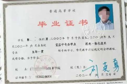 初中毕业生报考的五年制大专和高中毕业考的三年制大专,毕业证上有细微区别!